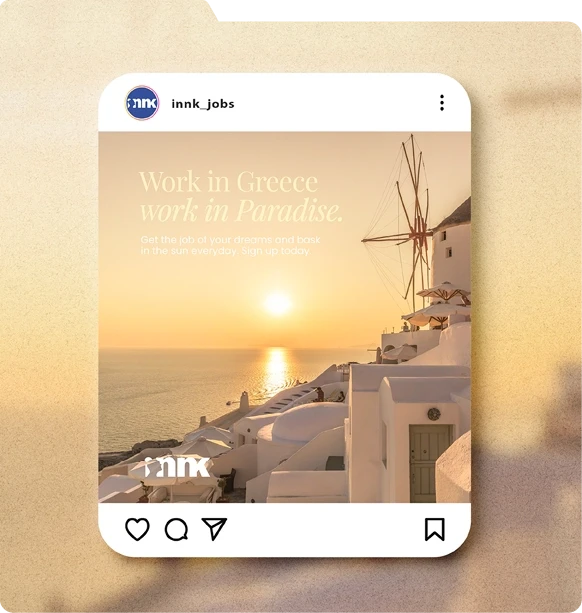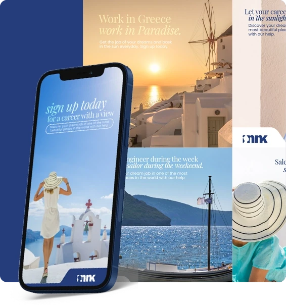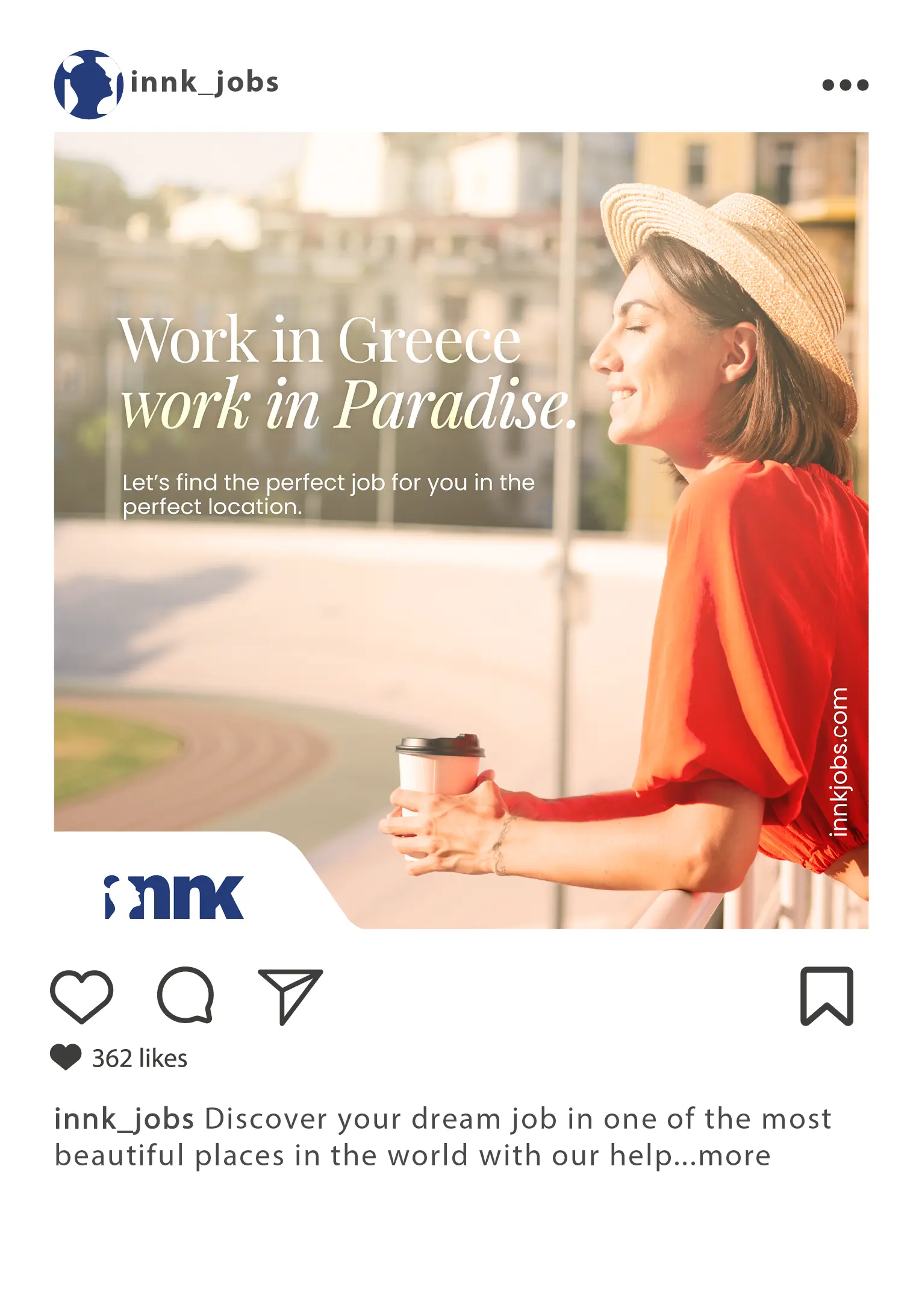 We aim to attract more signups by showcasing that working with Innk Jobs means more than career growth, it’s about lifestyle transformation. For example, a visual of a sales manager balancing weekday success with weekend adventures in Greece could be paired with the tagline, “Sales manager during the week, sightseer on the weekend.” We sell the benefits of living in Greece. This concept can easily adapt to highlight opportunities in any country.