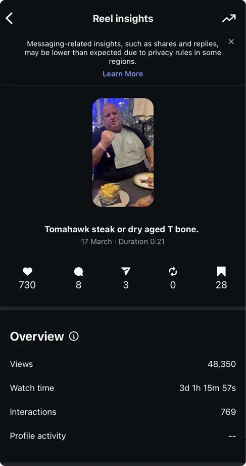 Several collaboration videos went viral, surpassing 30,000 views each, significantly contributing to an average monthly reach of 90,000 on the Instagram account. A collaboration reel with @justfooddxb achieved over 250,000 views on its own!
